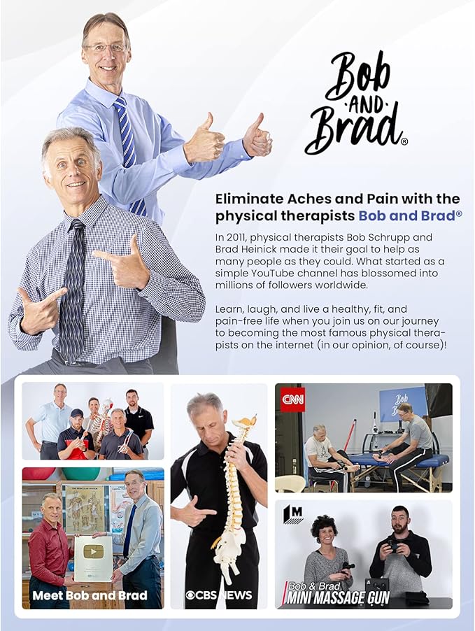 - Developed by Physical Therapists Bob and Brad: Explore warmup, pain relief, and recovery routines from the most famous physical therapists, Bob and Brad! Q2 Mini Massage Gun intense massage provide immediate pain relief, and wake up muscles throughout your body, triggering a myofascial release and enhancing your body’s ability to regenerate cells and repair itself.