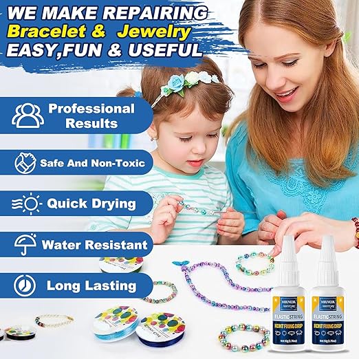 - Versatile for All Your Crafting Needs: This jewelry string glue is perfect for various projects, from securing elastic string in bracelets and necklaces to bonding clay beads, Bead Charms, Punctuation Beads,heishi beads, and even charms. Make it an essential tool in your crafting tool kit.