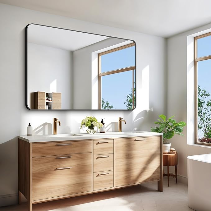 55x36 inch Bathroom Mirror,Black Rectangle Mirror,Wall Mounted Bathroom Frame Vanity Mirror with Round Corner for Bedroom Living Room, Entryway Hangs Horizontal or Vertical