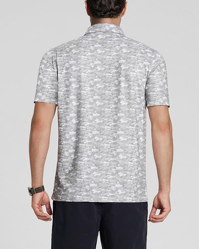 - Style Feature: This golf polo for men use allover print stretch fabric with easy care and keep good shape, well-made stitching.