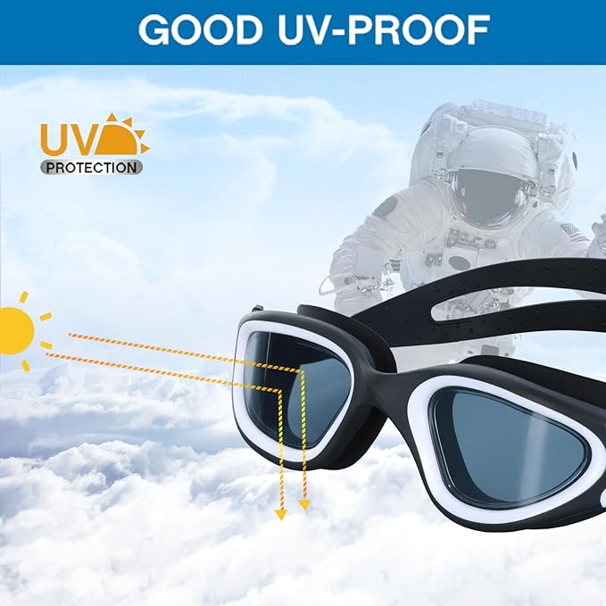 - Silicone non-slip strap, comfortable to wear----The goggles strap is made of high quality silicone and is very soft. The strap has anti-slip particles to keep the position of the goggles fixed ,let you have a better swimming experience
