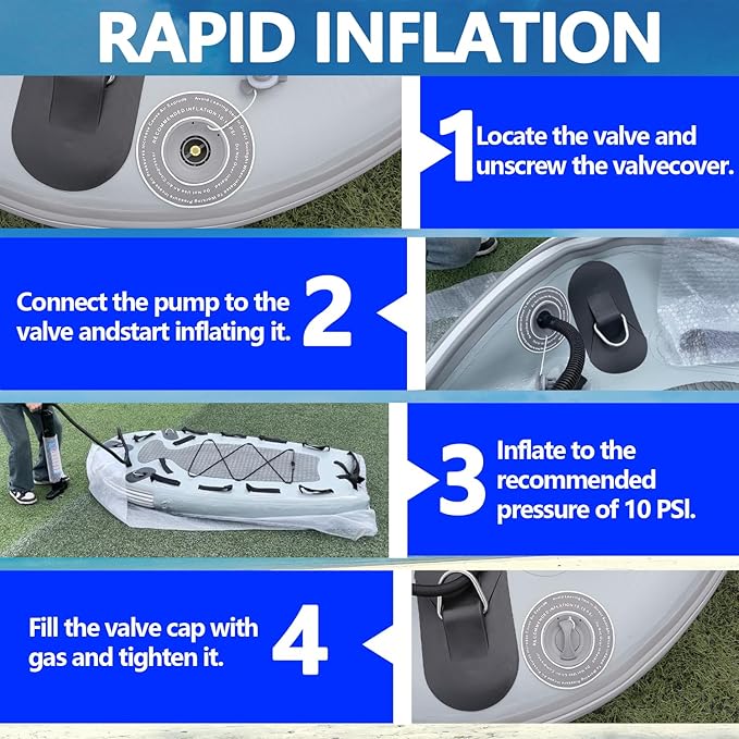 - 【Portability & Usage Scenarios】-After deflation, the volume is only of the conventional hardboard, which can be loaded into the backpack or vehicle equipment box, and is suitable for rapid deployment in complex environments such as mountainous areas and ships; it is also suitable for rescue in water areas such as floods, rapids and coasts, and can also be used as a temporary pontoon bridge or stretcher for transferring the injured.