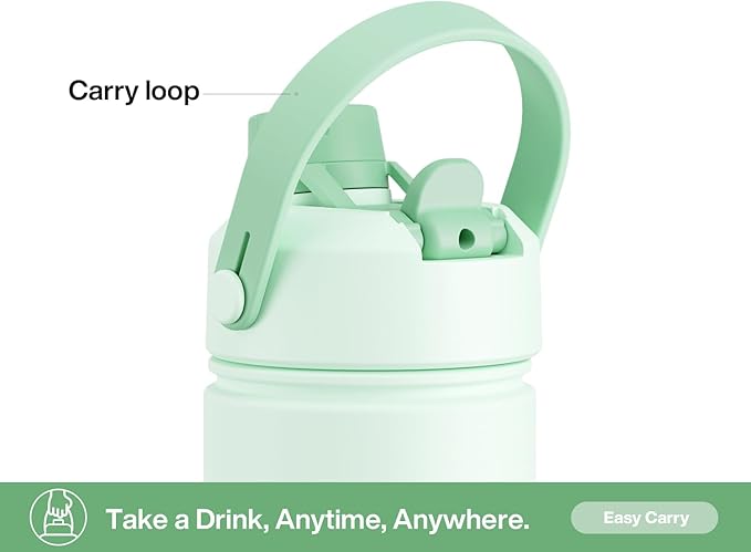 26 oz Insulated Water Bottle with 2-in-1 Straw and Spout Lid, Keep Cold 24H, Leak-Proof, Fits in Car Cup Holder, Stainless Steel Water Bottle for Sports, Travel, and School (Mint)