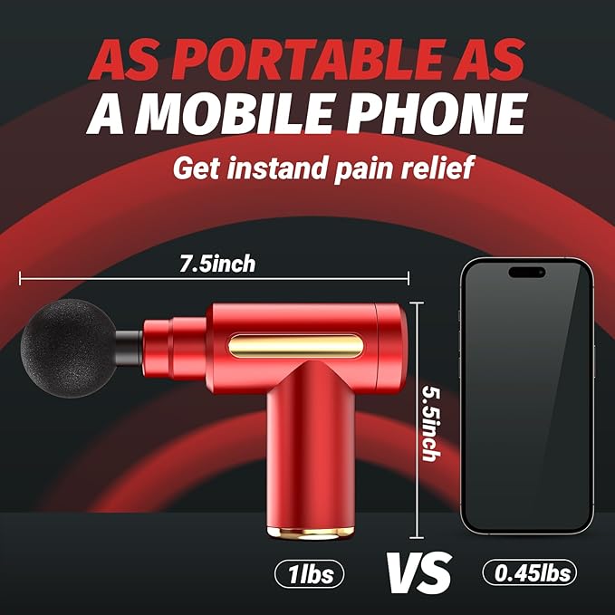 Massage Gun, Small Travel Tool, Massage Gun Deep Tissue,Percussion Handheld Portable Muscle Massager Tool for Full Body Pain Relief, Ideal Gifts for Men, Women(Red)