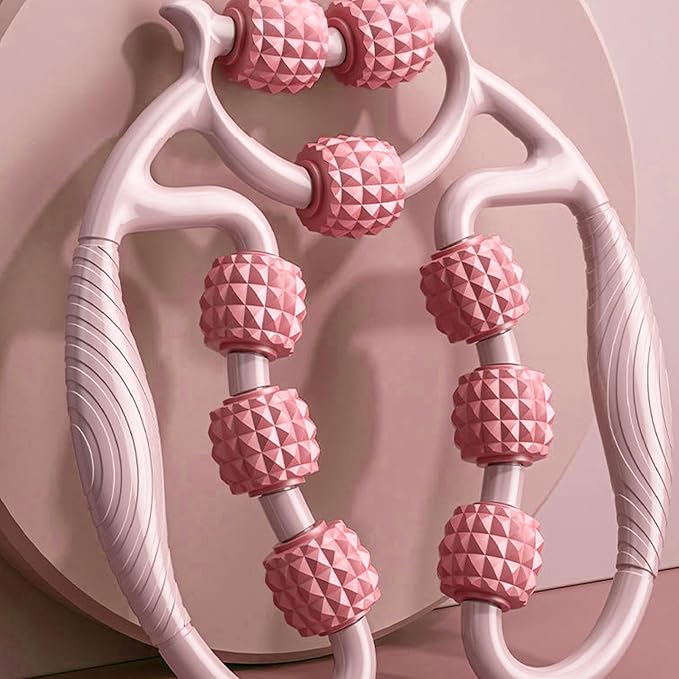HEEPDD 9 Wheels Muscle Roller, Leg Massager Muscle Relaxation Stretching Roller Foam Roller Deep Tissue Massager for Thigh Arms Leg Waist (Pink)