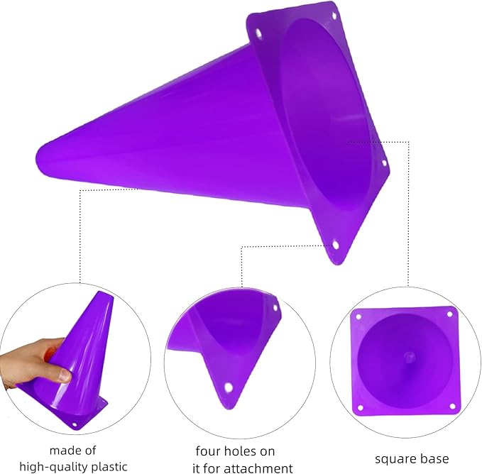 - Versatile: Set of 24 plastic purple traffic cones, 7 inches tall, ideal for various sports drills, training exercises, and festive events.