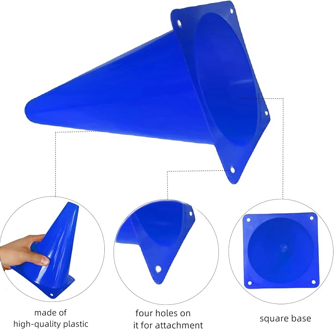- Versatile: Set of 24 plastic blue traffic cones, 7 inches tall, ideal for various sports drills, training exercises, and festive events.