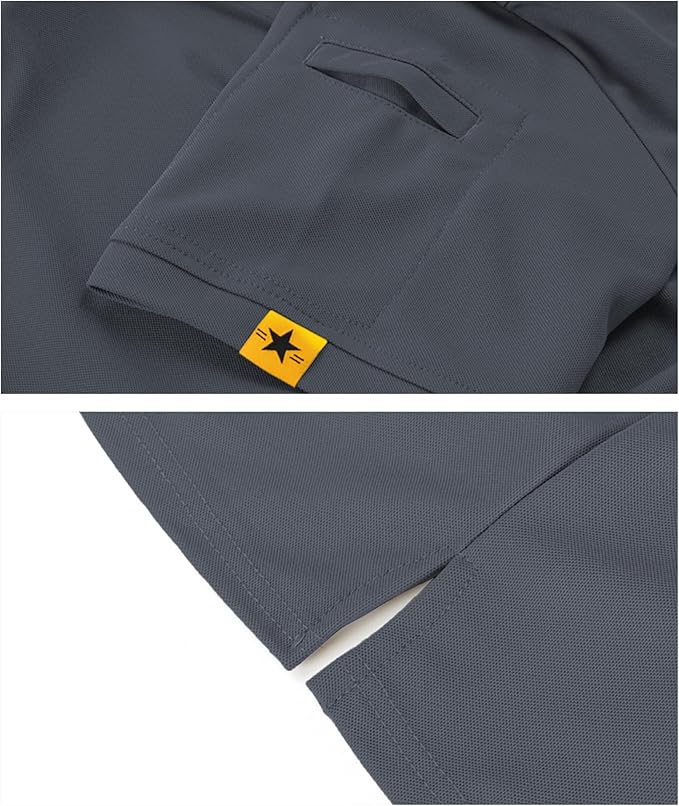 - SPEIAL DESIGN OF MEN'S POLO: The ring buckle design under the placket is convenient for carrying sunglasses/microphones. Sleeve pocket design makes it easy to carry small items such as keys/headphones