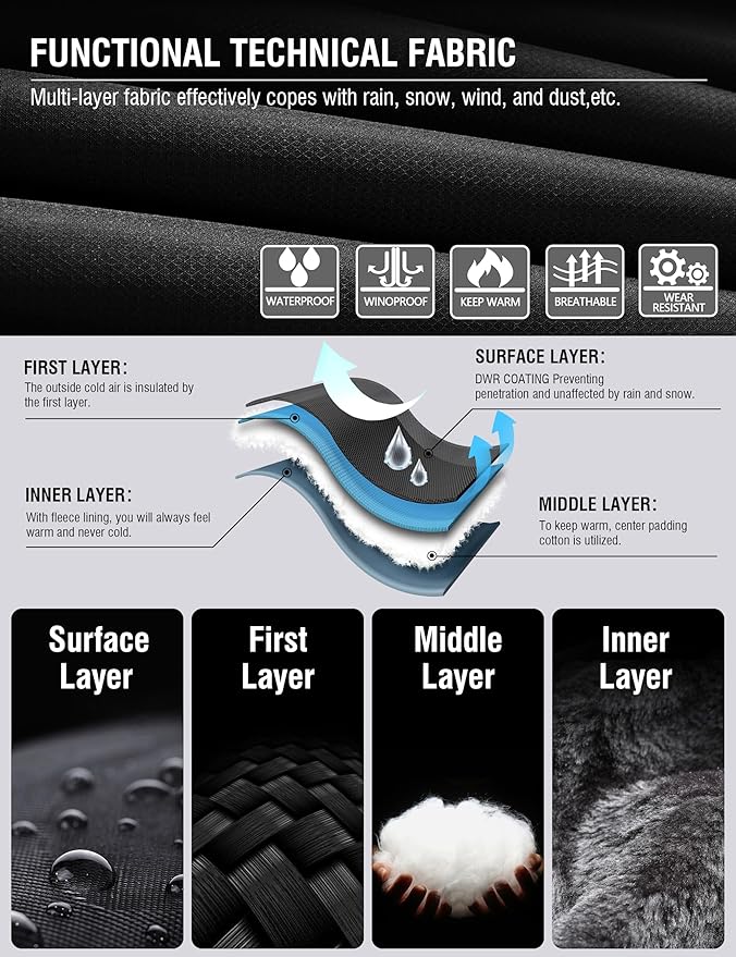 - Waterproof & Quick Dry Winter Coats for Men: Our winter jacket with a professional water repellent coating and has a waterproof level of 10000mm. The zippers are also waterproof, so you don't have to worry about getting wet while skiing, snowboarding, or in rainy weather.