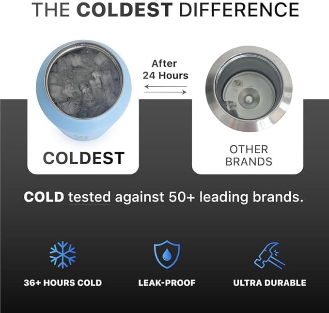 - π ππππ-πππππ ππππππππππ: Is your water bottle flask creating a wet mess? The Coldest 18/8 Stainless Steel Water Bottle boasts a 100% leak-proof design, ensuring not a drop escapes. Thanks to the wide mouth lid, it provides convenience without compromising on leakage protection. The true double-wall stainless steel construction guarantees a water tight seal, allowing you to confidently embrace a mess-free hydration experience with Coldest Steel Water Bottles.