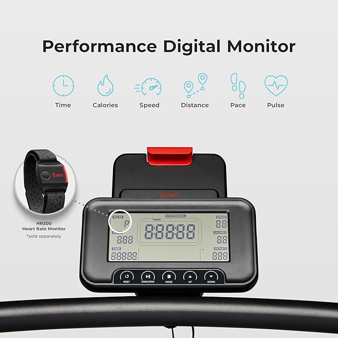 - 【PERFORMANCE LED MONITOR】Equipped with a digital display that monitors time, calories, speed, distance, pace, and pulse (HR200 sold separately), offering all essential workout metrics in one quick glance.