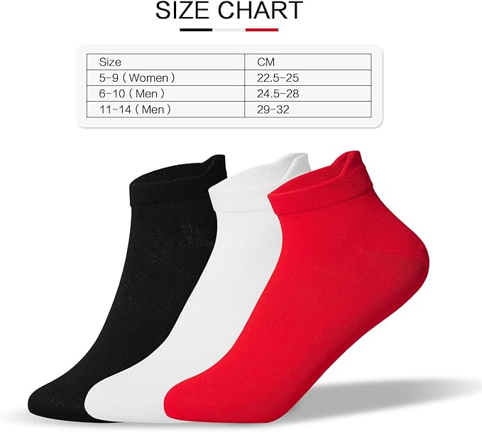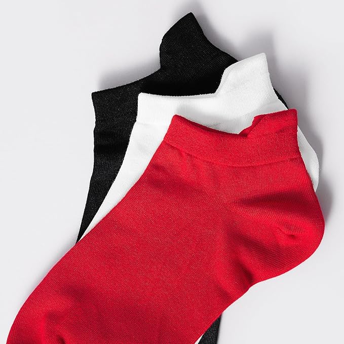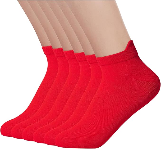 Men's Red Socks Ankle Socks Comfortable White/Black Casual With Heel Tab,Chinese New Year Socks, Size 6-10 (6 pairs)