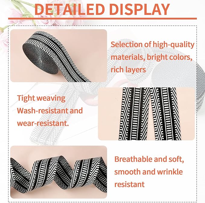 - 【Sturdy and Durable】: Crafted to be strong and durable, this webbing strap can withstand heavy use without compromising its integrity, ensuring your items stay secure.Combining a strong webbing with an attractive pattern, this strap provides both durability and aesthetic appeal, making it ideal for decorative and functional purposes.