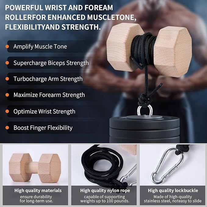 Wooden Wrist Roller and Forearm Strengthener,Grip Strength Trainer,Arm Blaster Exerciser,Strength Trainer For Fingers and Wrist.