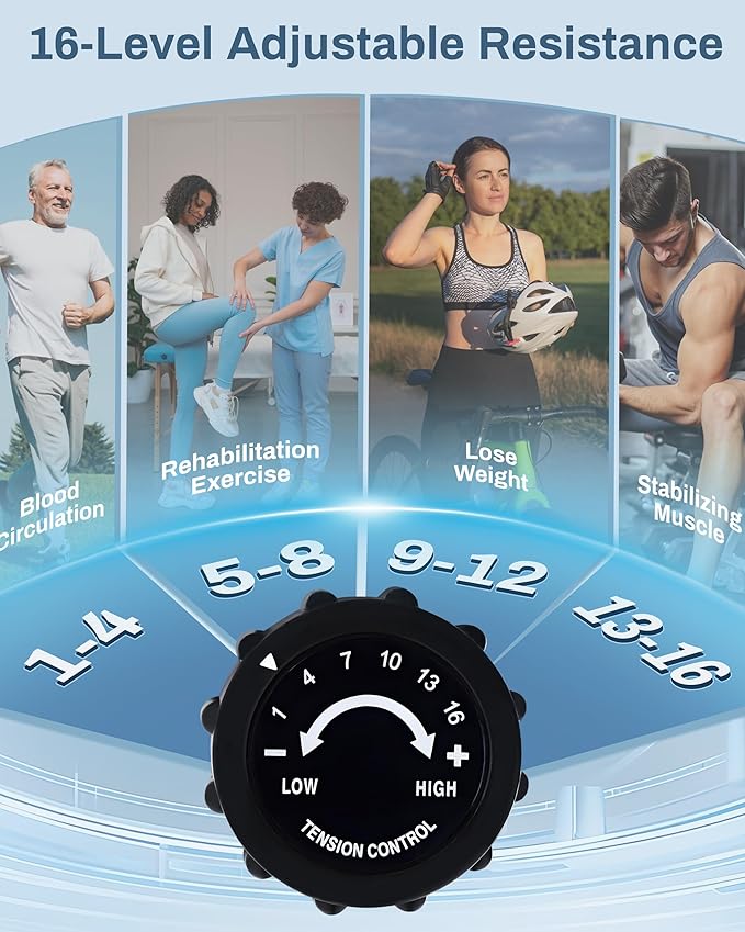 - 【Whisper Quiet 16-Level Magnetic Resistance】Our recombinant exercise bikes utilizes patented magnetoresistance technology to ensure ultra-quiet workouts, featuring 16 levels of magnetic resistance that empower you to tailor the intensity of your workouts for maximum efficiency and optimal results.