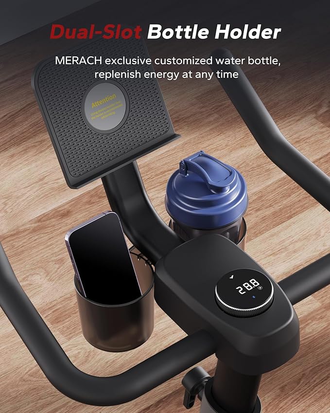- INVERTED TRIANGLE DESIGN: The indoor bicycle exercise machine features a MERACH frame with an inverted triangle design, offering exceptional stability. Its one-piece stamping body has fewer than 5 welding points and supports up to 300 lbs, ensuring durability and high load-bearing capacity