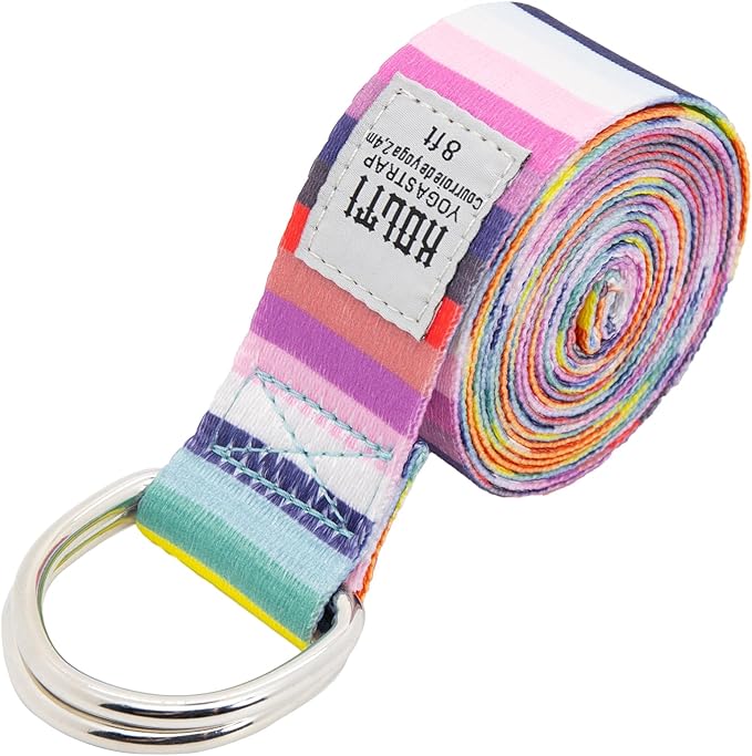 - D-SHAPED BUCKLE DESIGN: The Kolti yoga band features an innovative, easy to release, and adjustable D-shaped dual ring metal buckle with a thickness of 0.3 silver and a width of 2.1 inches, which is sturdy enough to withstand intense stretching and repeated yoga classes. In addition, D-shaped buckles are less likely to slide than rectangular buckles, ensuring your safety during use. Compared to rectangular buckles, the D-shaped design is more stable, effectively reducing the possibility of sliding and ensuring your safe practice, making every stretch more worry free.