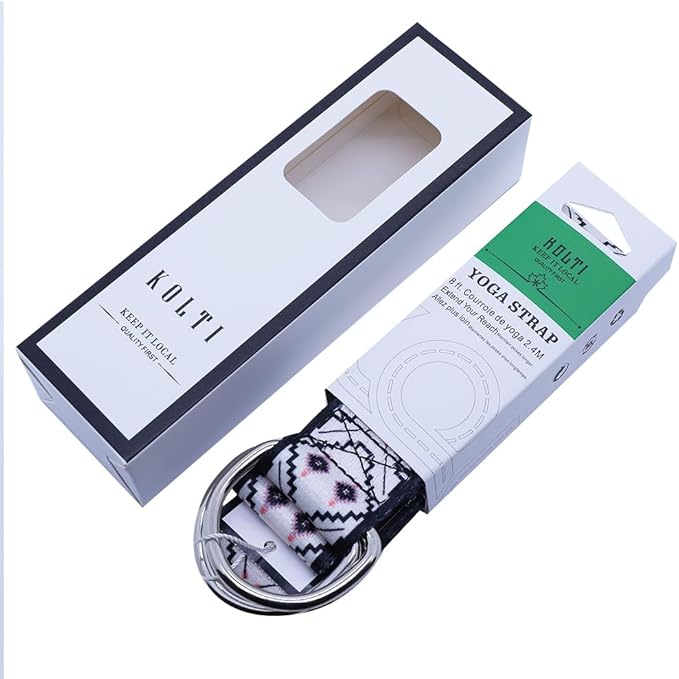 - D-SHAPED BUCKLE DESIGN: The Kolti yoga band features an innovative, easy to release, and adjustable D-shaped dual ring metal buckle with a thickness of 0.3 silver and a width of 2.1 inches, which is sturdy enough to withstand intense stretching and repeated yoga classes. In addition, D-shaped buckles are less likely to slide than rectangular buckles, ensuring your safety during use. Compared to rectangular buckles, the D-shaped design is more stable, effectively reducing the possibility of sliding and ensuring your safe practice, making every stretch more worry free.