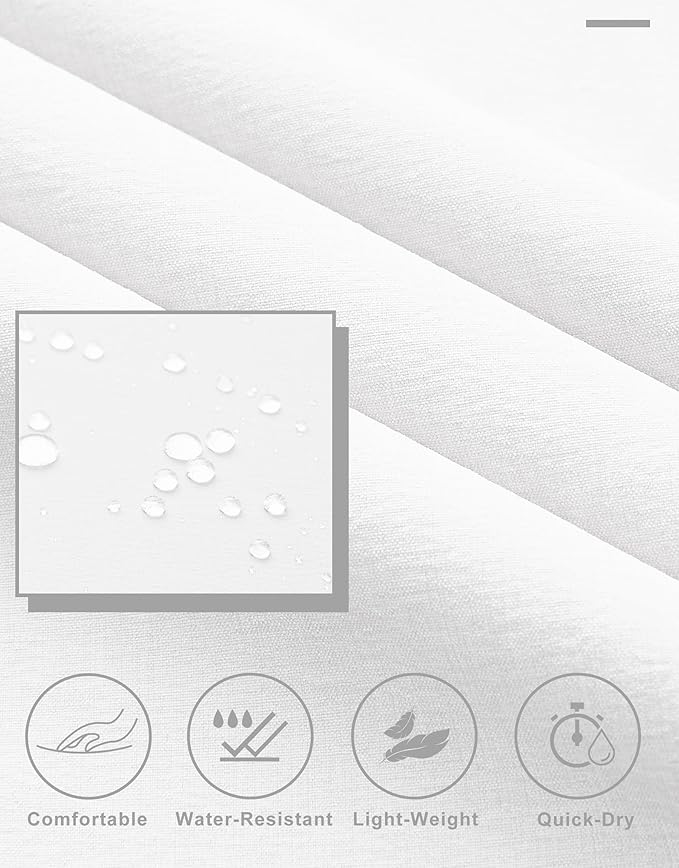 • Comfort Fabric: Lightweight, stretchy, quick dry, moisture wicking fabric keeps you dry and cool all day, gentle stretch and shape-retention, water-resistant capacity to help resist light rain for a short time. PS: Although the pants may arrive with some creases due to packaging, a simple water wash will eliminate them