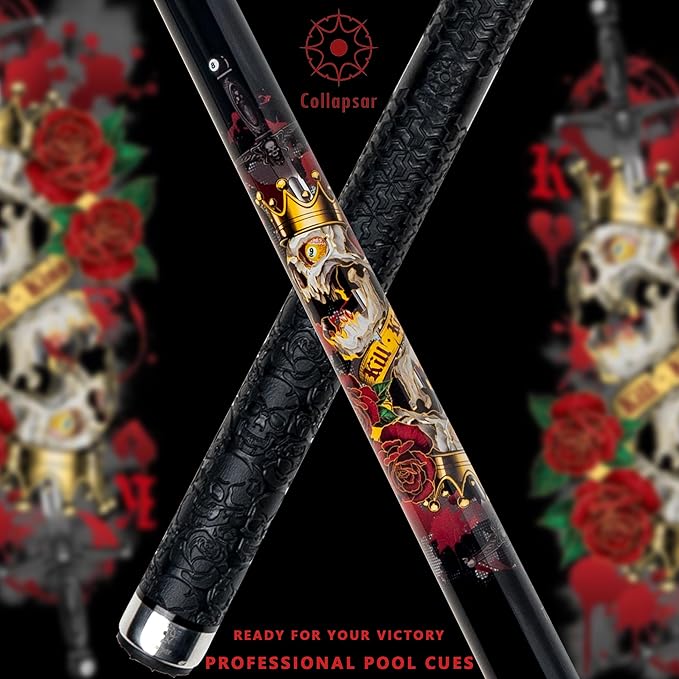 - COLLAPSAR 58" Original Skull Series Pool Cue Stick Come with a 1X1 Cue Case and joint protectors,Available in 19 - 21 ounce .