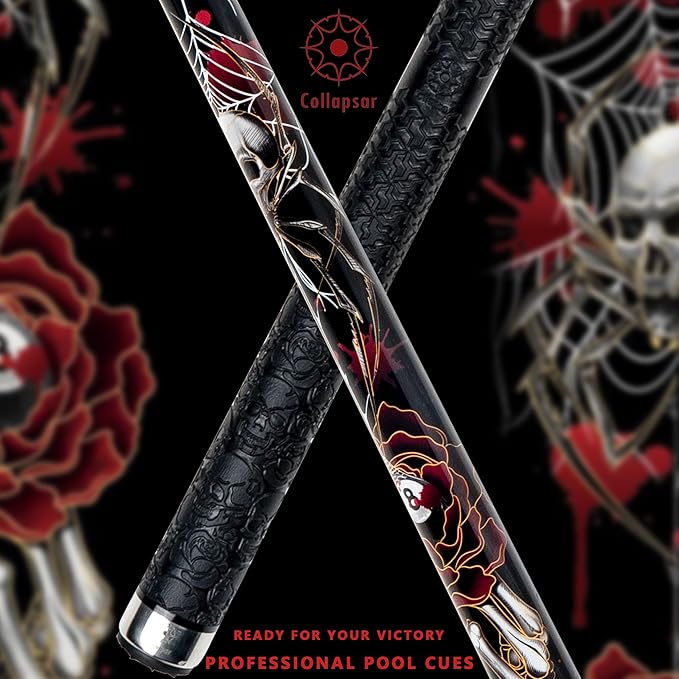 - COLLAPSAR 58" Original Skull Series Pool Cue Stick Come with a 1X1 Cue Case and joint protectors,Available in 19 - 21 ounce .