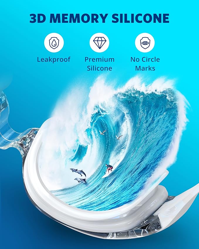 - Great Seal & No Leaking-The ergonomic design of swim goggles with high-quality silicone material ensures a close fit to different face shapes and never allows leakage. In addition, the flexible silicone frame and improved higher nose rest provide extreme comfort and will never hurt your nose or leave marks on your face.