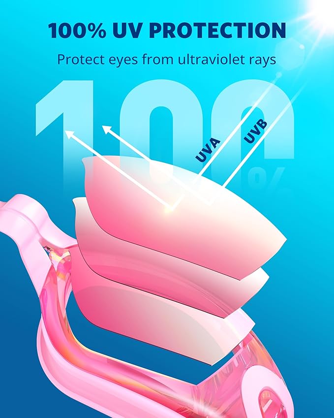 • Stay Away From Fogging and Harmful Rays-The inner surface of the premium lenses is treated with the latest environmental technology to prevent the goggles from fogging up. In addition, the outer surface of the lenses with colorful coating enables the lenses to reflect the dazzling sunlight and protect your eyes from the sun's harmful rays. So say goodbye to uncomfortable swimming experiences.