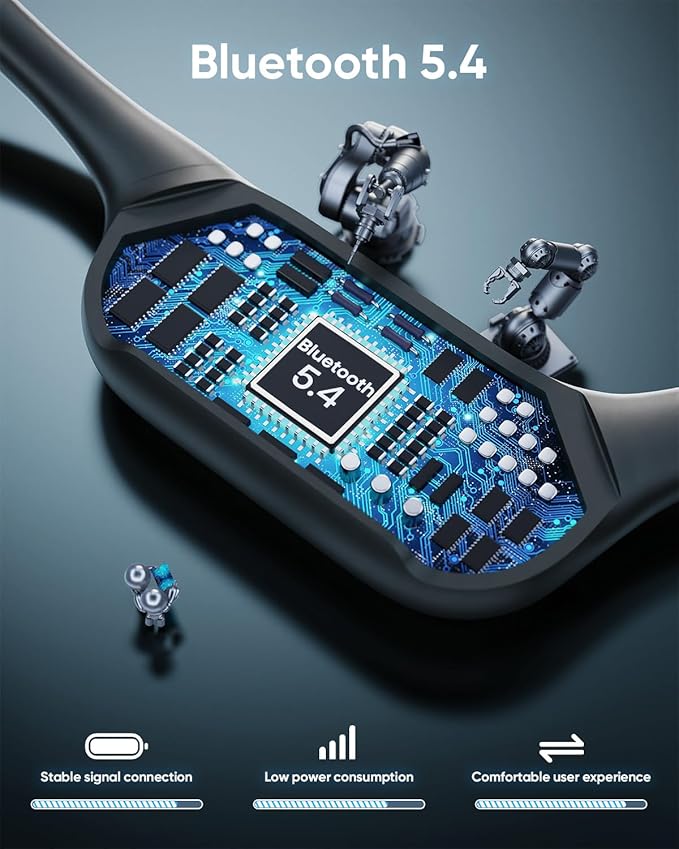 - Bluetooth 5.4 - bone conduction headphones are equipped with the latest Bluetooth 5.4 chip, which can provide a stable connection of up to 10 meters. headphones can connect to 2 Bluetooth host devices, allowing you to easily switch between your laptop and smartphone, and you can listen to music, audiobooks, make and receive calls.