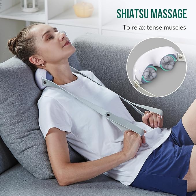 - 3D Shiatsu Neck Massager: Snailax cordless neck massager with heat features 3D innovative shiatsu balls to provide deep kneading massage for sore of neck, targeting the acupuncture points to relieve neck back pain, and taking away the tiredness of the day.
