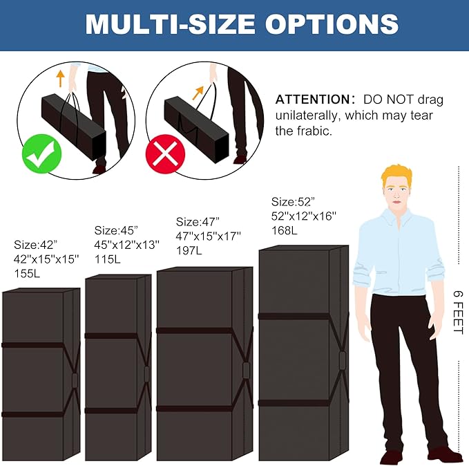 - Dimensions when full: 52" x 12" x 16" (L*W*H) with extra-large capacity, COOLBEBE travel bag with roomy interior for storing items. Ideal for camping, hunting and sport travel and even fits for umbrella style strollers