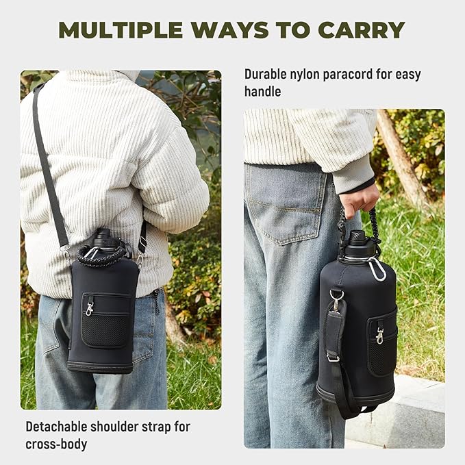 - What You'll Get: Buy 2 pack one gallon insulated water bottle, independent carton packaging,get double accessories (Carrying Pouch, Straw Lid with 2 Straws & Straw Brush, Spout Lid, Paracord Handle, Bottle Brush). We offer Continuous After-sales Service and 100% customer satisfaction against any leakage or insulation failure