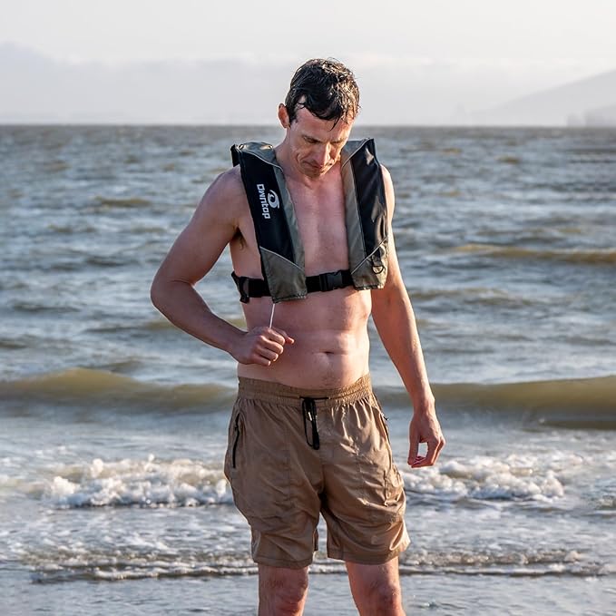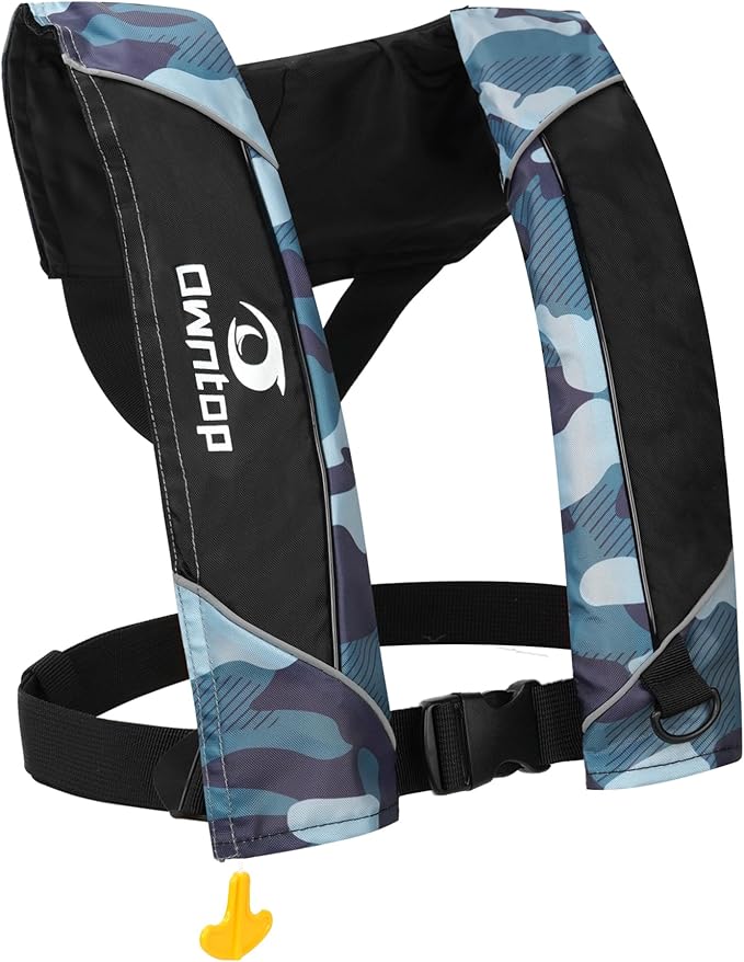 Owntop Manual Inflatable Swim Jacket, Neoprene Padded Neckline, 33g C02 Cylinder Included, Multiple Reflective Strips, Compact Design for Kayak, Fishing, Paddle Sports