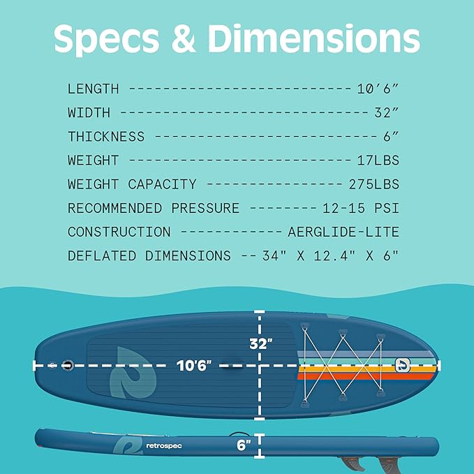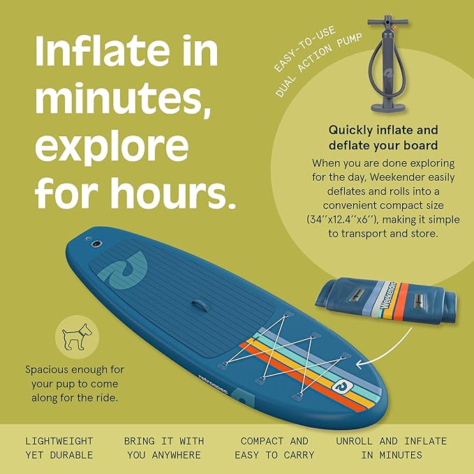 - ULTRA-PORTABLE DESIGN: At just 17.5 lbs, this inflatable paddle board rolls up to backpack size when deflated. Toss it in your car or store it easily - no roof rack needed for your water adventures