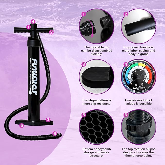 - [Unique Design ] Inspired by Totem culture, this grape-purple coloured paddleboard is versatile enough to appeal to the SUP enthusiast on the golden beaches of Hawaii, where Funwater users have always believed in the joy our paddleboards can bring to friends and family