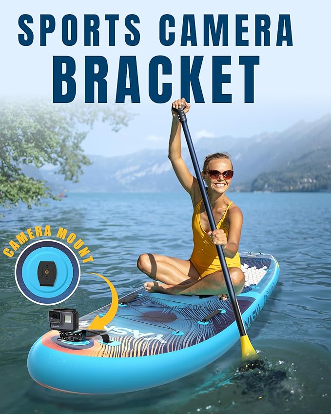 YASKA Inflatable Stand Up Paddle Board - 11ft Extra Wide Paddleboard with Premium SUP Board Accessories,Camera Mount,Non-Slip EVA Deck,5 Handles,Youth/Adult