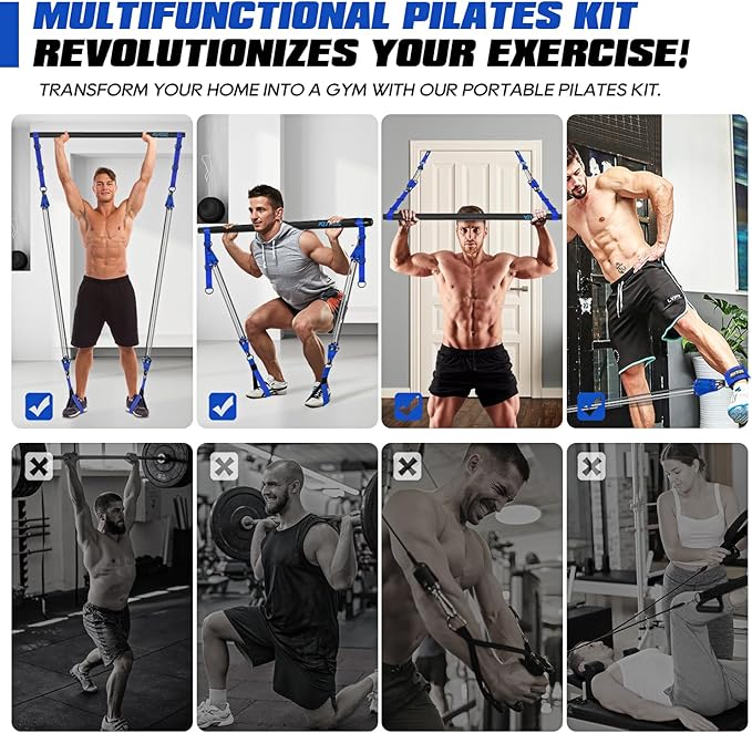 Pilates Bar Kit with Resistance Bands, Heavy Duty Pilates Equipment for Men, Strength Training Bar for Legs, Hip, Back, Arm, Abs, Chest, Shoulders, Portable Home Gym Full Body Workout Equipment