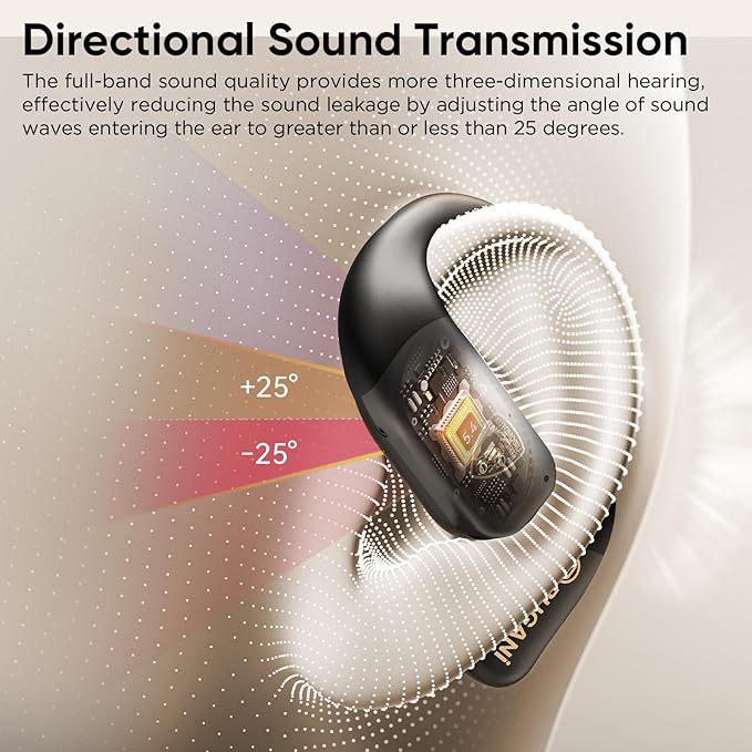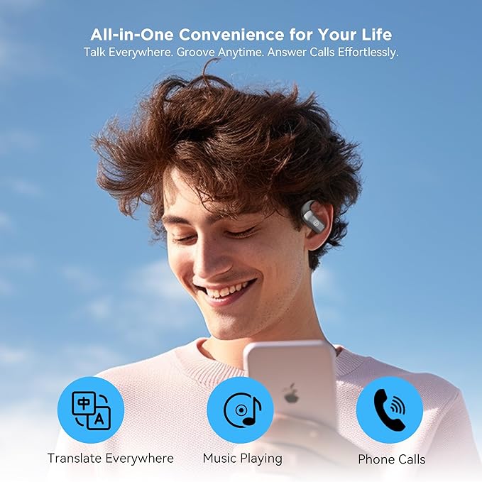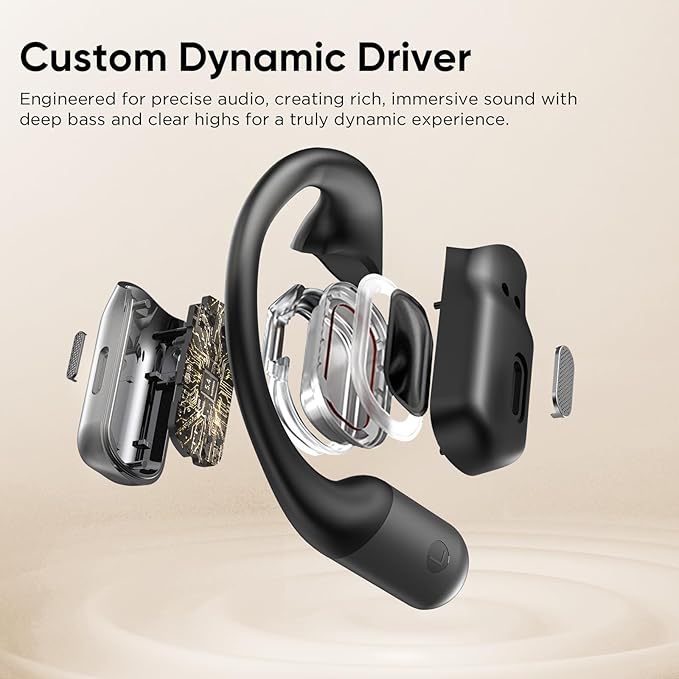- 【Open-Ear Comfort & Awareness】 Experience the freedom of our open-ear design. Lightweight, non-intrusive ear hooks crafted from premium ABS contour perfectly to your ear, eliminating ear canal pressure. Enjoy all-day comfort whether working, commuting, or relaxing. The open structure keeps you aware of your surroundings, making these earbuds the safest choice for jogging, cycling, or navigating busy streets. Easily hold conversations without removing them.