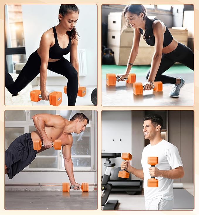 - The dumbbell weights set are square and not round. The square shape keeps them from rolling around on the floor or shelf. The handle boasts anti-slip strips to provide better gripping.