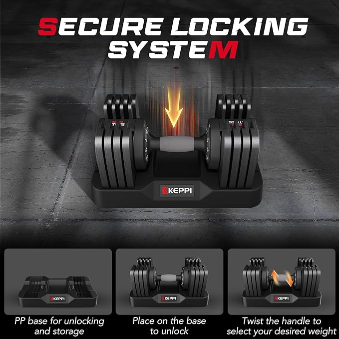 Keppi Adjustable Dumbbells Set-25lb/40lb/55lb/60lb, Anti-Slip Metal Fast Adjust Weight Handle, Exercise & Fitness for Full Body Workout - Adjustable Dumbbell Series