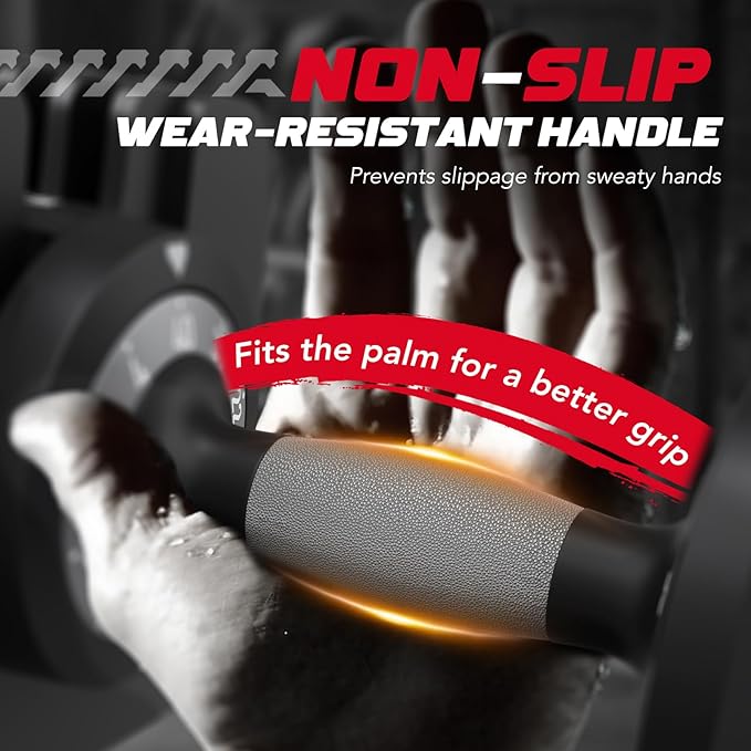 - Secure Locking System - Dual safety protection:base unlocking system and dial system work together.8 safety slots firmly lock the dumbbell plates for enhanced stability and safety.