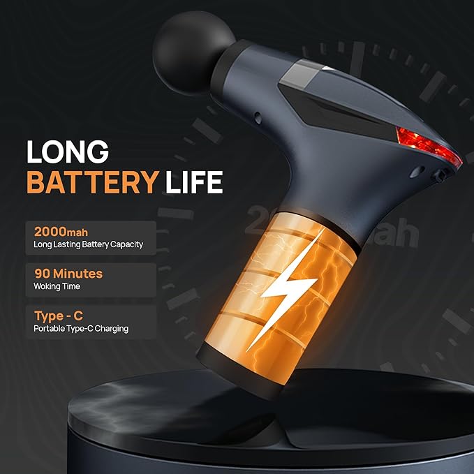 - 𝐅𝐚𝐬𝐭 𝐔𝐒𝐁-𝐂 𝐂𝐡𝐚𝐫𝐠𝐢𝐧𝐠 & 𝟑-𝐇𝐨𝐮𝐫 𝐑𝐮𝐧𝐭𝐢𝐦𝐞: The 2000mAh battery quickly recharges via USB-C in just 2.5 hours, providing up to 90 Mins of cordless use. It automatically stops after 15 minutes to prevent overuse. Its compact, travel-ready design makes it perfect for gym sessions or home recovery.