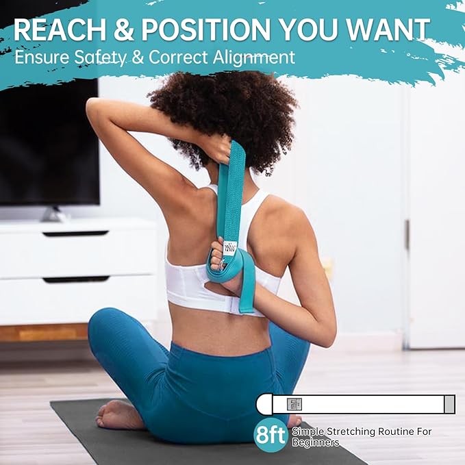 - STURDY & TOUGH STRETCHING STRAP - The yoga strap is constructed of a durable high-quality fabric blend of polyester, reinforced stitching, will not fray or break, the maximum load of the band is 2,379 lbs (1.080 ton). Washable, skin-friendly with eco-friendly dye (Non-Elastic Yoga Strap), easily rolls up and fits in your yoga mat bag or tote.
