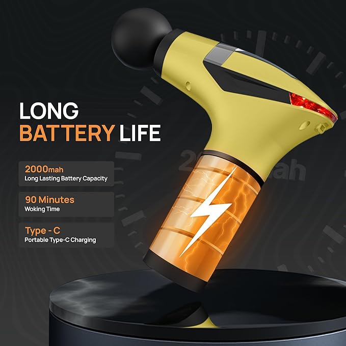 - 𝐅𝐚𝐬𝐭 𝐔𝐒𝐁-𝐂 𝐂𝐡𝐚𝐫𝐠𝐢𝐧𝐠 & 𝟑-𝐇𝐨𝐮𝐫 𝐑𝐮𝐧𝐭𝐢𝐦𝐞: The 2000mAh battery quickly recharges via USB-C in just 2.5 hours, providing up to 90 Mins of cordless use. It automatically stops after 15 minutes to prevent overuse. Its compact, travel-ready design makes it perfect for gym sessions or home recovery.