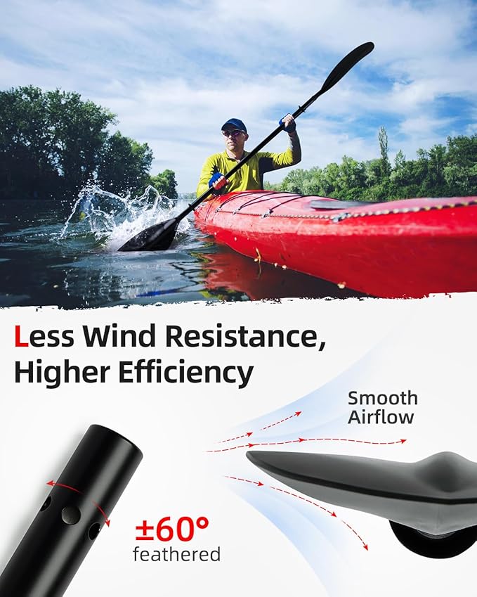 • 【LIGHTWEIGHT AND DURABLE 】The aluminum alloy shaft is known for its strength and ability to withstand the wear and tear of frequent use. In addition to its durability, the aluminum alloy shaft also offers better performance and more efficient paddling. PP blades are lightweight and indestructible blades offer flexibility and efficiency, making it easier for paddlers to navigate through the water with ease.