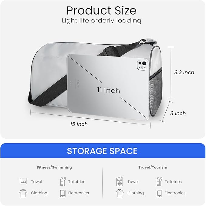 - Water-Resistant & Tear-Proof Material:High-density polyester Oxford fabric withstands heavy use;Reinforced with smooth-gliding metal zippers,waterproof & tear-resistant for gym, beach & sports