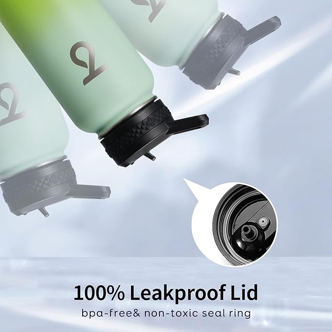- Three Lids & Leakproof: Each lid comes with a rubber seal ring to ensure 100% leakproof. Sip through the flip-up straw lid, drink like a fish through the spout lid, or refill ice cubes through the wide mouth, you are in good hands with Trebo 40 oz water bottle.Wide mouth water bottle for easy to clean.