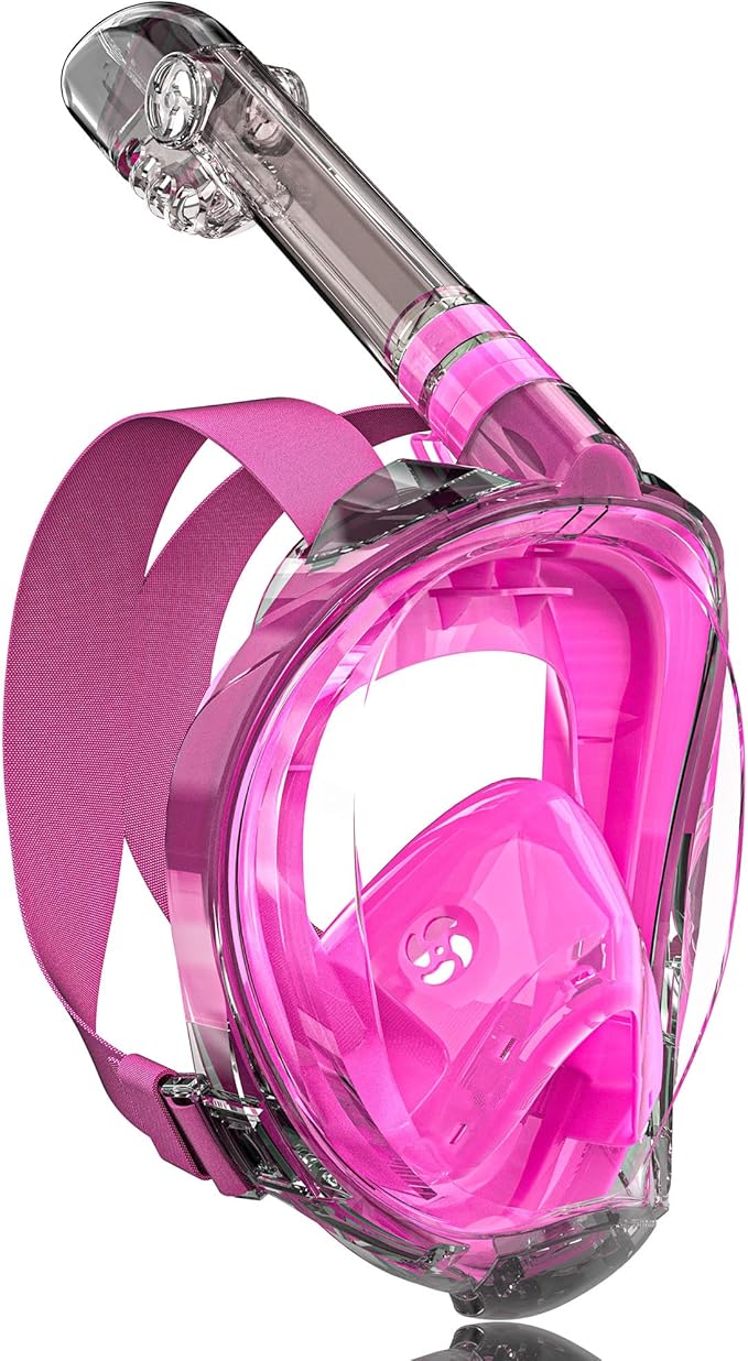 - ENHANCED FUNCTIONS: Newest version snorkel mask full face adds two quick release buttons, which make it easier to wear. Highly elastic djustable shoulder strap and mask can perfectly fit your face. The breathing tube has a silicone band to prevent loss of the snorkel It is simple to install, Easy to fold and store, While also occupying less space.