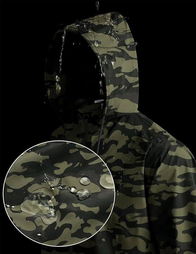 • ?�Waterproof & Breathable?‘Rain jacket for men is made of high density soft shell fabric, high quality waterproof coating inside. Fully sealed seams further improve waterproof performance, advanced technology enhanced breathability that keep you cool and dry all day.