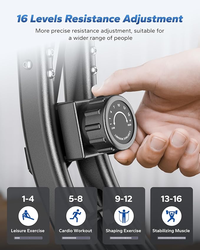- 16-Level Magnetic Resistance: With 16 level of magnetic resistance, our exercise bikes for home offers an unbeatable combination of smoothness and quietness, allowing you to focus on your workout without any distractions. You can easily customize your workout intensity to your individual fitness level and goals