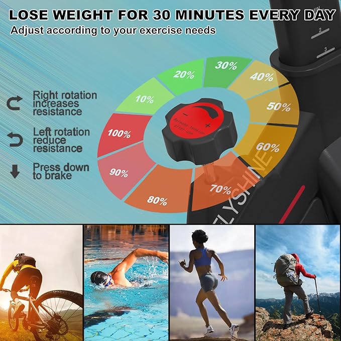 - 🚴【INFINITE ADJUSTABLE RESISTANCE SYSTEM】 Customize your workout intensity with the bike's adjustable resistance levels to suit your fitness goals, allowing for a challenging or comfortable workout. This exercise bike provides an effective cardiovascular workout to improve heart health and burn calories.